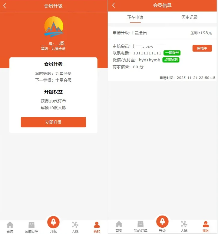 6.二星升三星可以获得27个订单,三星升四星可以获得81个订单,每升一星都需要给自己的上级创客转一次钱;