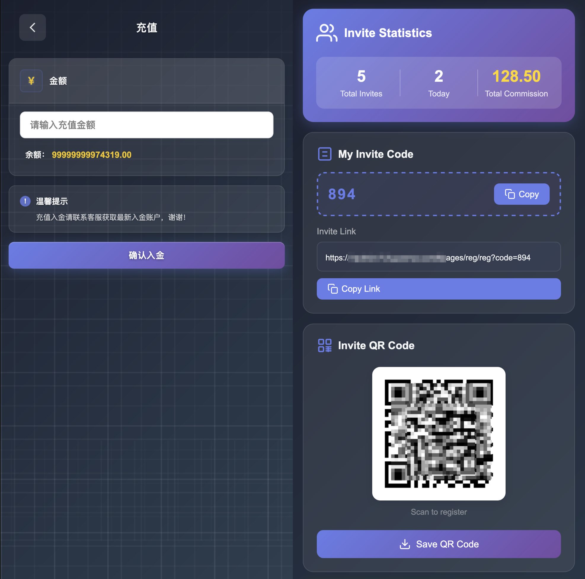 带代理后台,等级VIP制度,投资理财,邀请制度,余额宝功能 等等