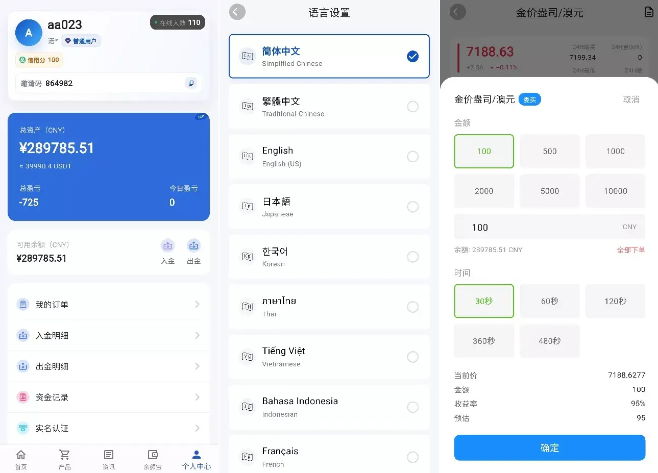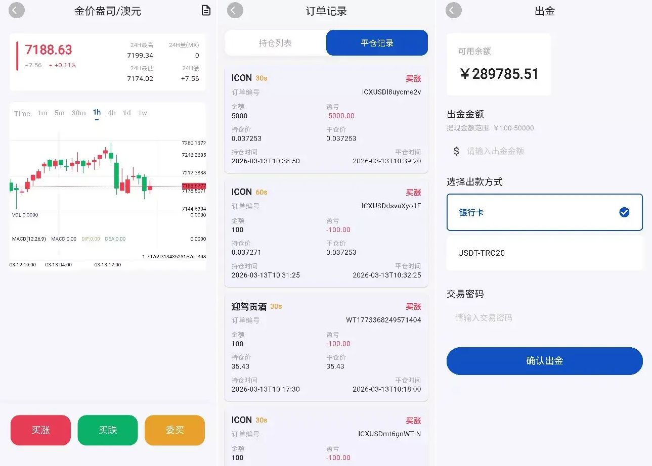 多维度资产交易: 对接“沧海数据”等专业 API,支持 BTC/ETH/SOL、外汇 (Forex)、贵金属 (Precious Metals) 等数百种产品的实时 K 线与下注逻辑。支持 30秒至480秒 的极速时间盘玩法。
